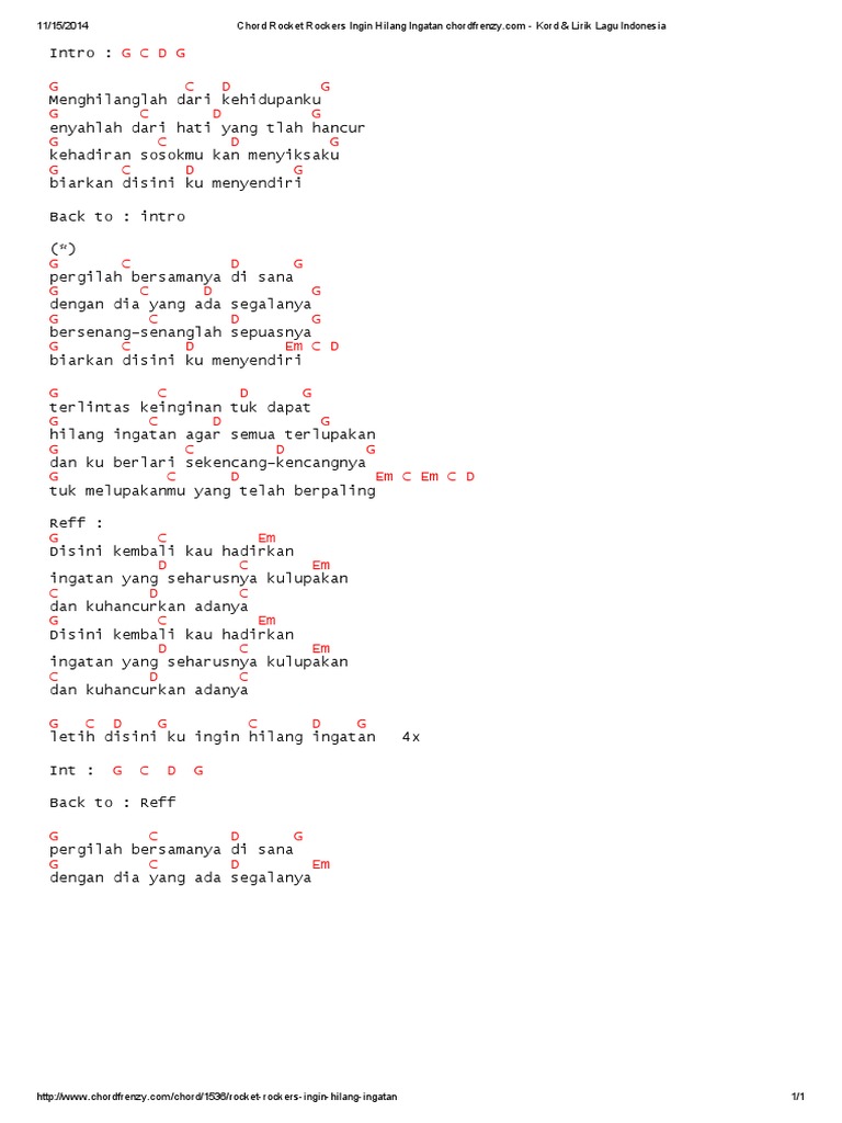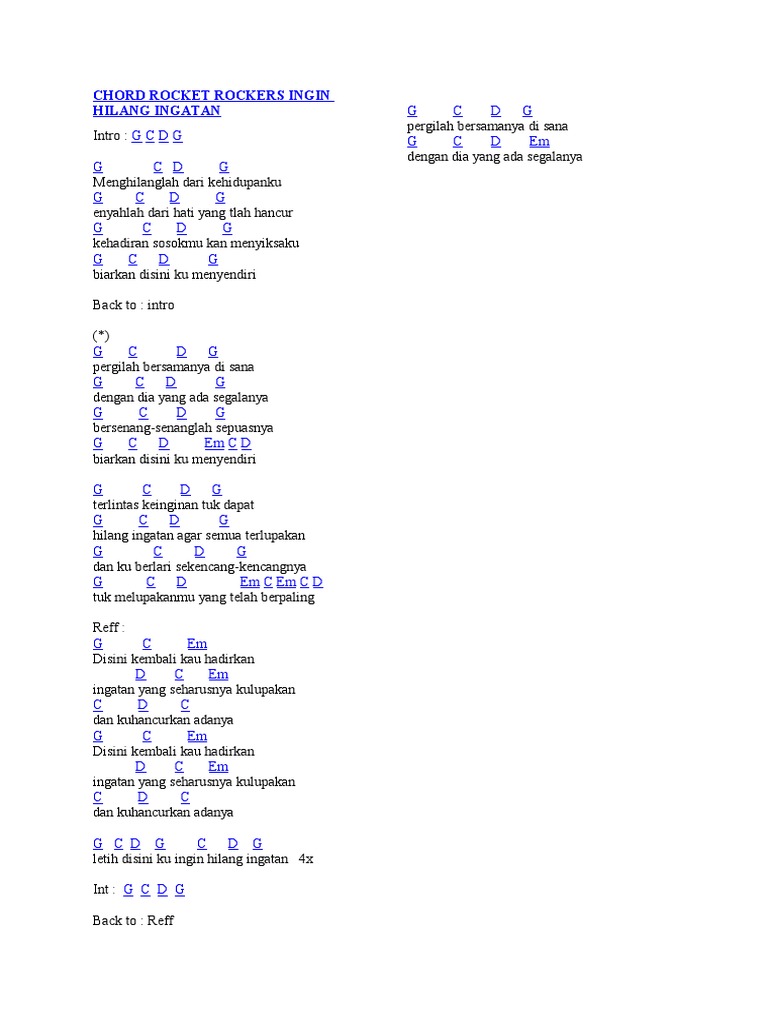 Rocket Rockers Ingin Hilang Ingatan Cord Lirik Chords Chordify